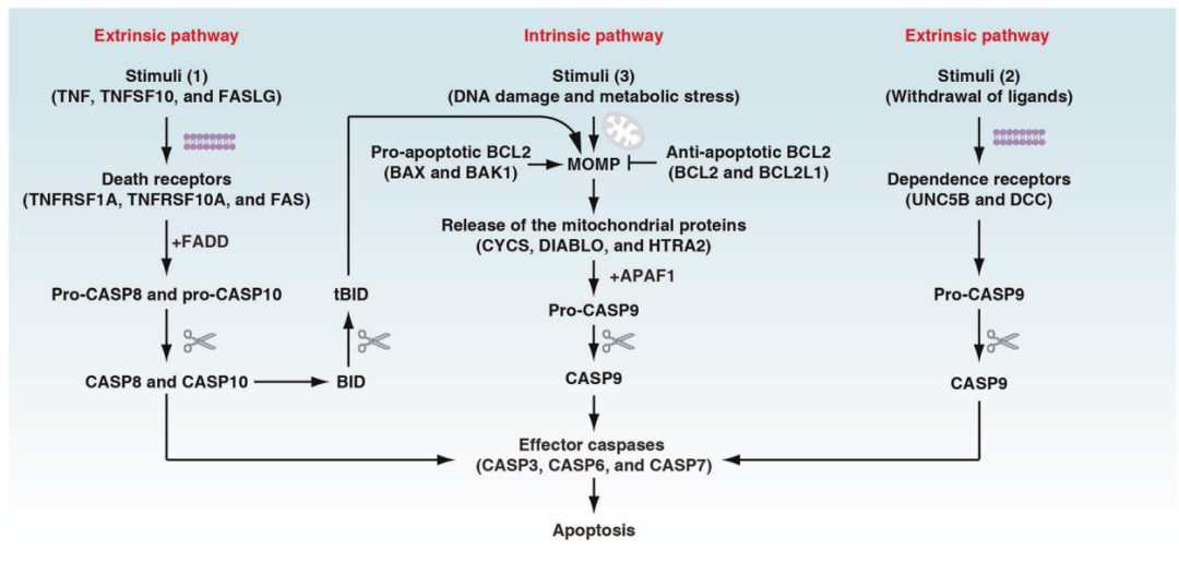 细胞凋亡分为外源性和内源性细胞凋亡: