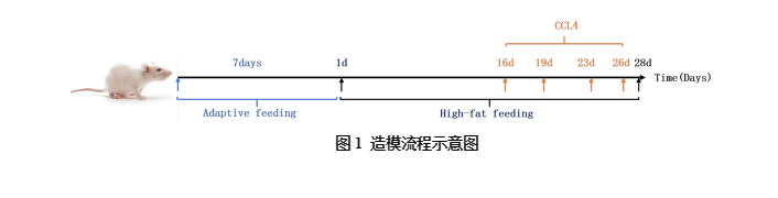 背景介绍:非酒精性脂肪肝炎(nonalcoholicsteatohepatitis,NASH)是一种代谢紊乱症,伴随着不同程度的炎症和纤维化,最终将演变成终末期肝病(如肝硬化,肝癌)。NASH主要病理特征为肝细胞大泡性脂肪变性伴肝细胞损伤和验证,严重者可发展为肝硬化。二次打击学说是目前较为普遍接受的一种解释NASH发病机制的假说,一次打击时由肝脏中脂肪堆积造成的,脂肪变性后的肝细胞比正常肝细胞更容易收到第二次打击的损伤,导致肝细胞的一系列损伤包括炎症,凋亡,纤维化和癌变等,启动第二次打击的主要因素包括氧化应激,脂质过氧化,促炎症因子、线粒体功能障碍、肝脏微循环障碍等。四氯化碳是使用最早,应用最广泛的诱导肝硬化动物模型的化学药品,低浓度四氯化碳反复应用可损害肝脏,肝脏损害-修复-损害最终形成肝硬化。高脂饮食联合四氯化碳,可快速构建慢性非酒精性脂肪肝炎。