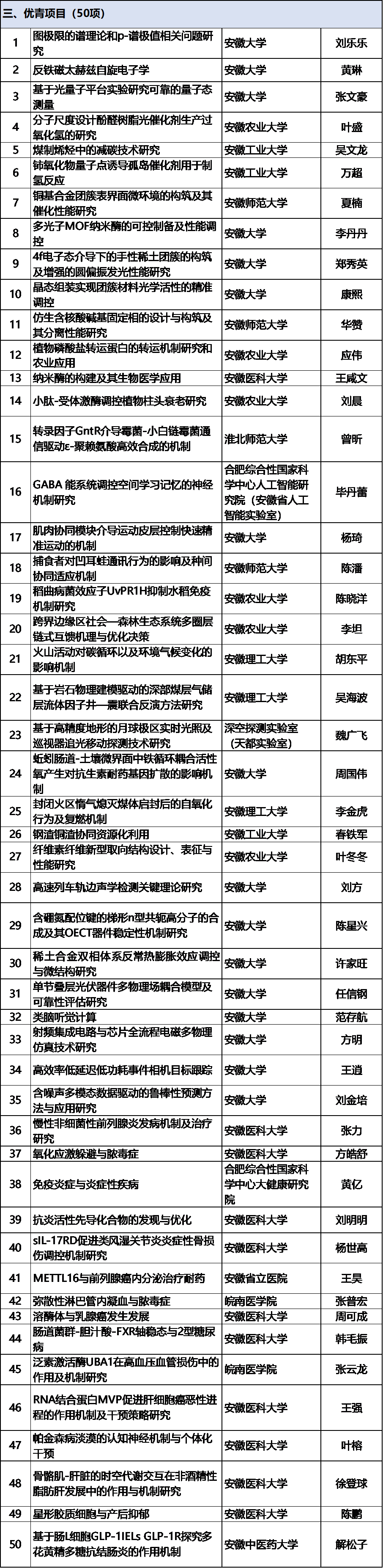 根据《安徽省自然科学基金管理办法(修订)》(皖科基奖〔2020〕16号),经组织申报、各依托单位推荐、形式审查、专家评审,现将2024年度安徽省自然科学基金杰青延续资助、杰青、优青、青年和面上拟立项项目予以公示。
