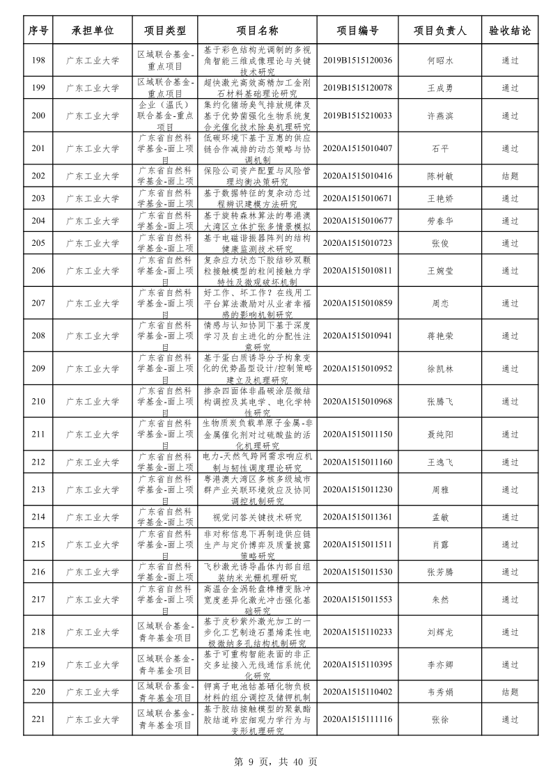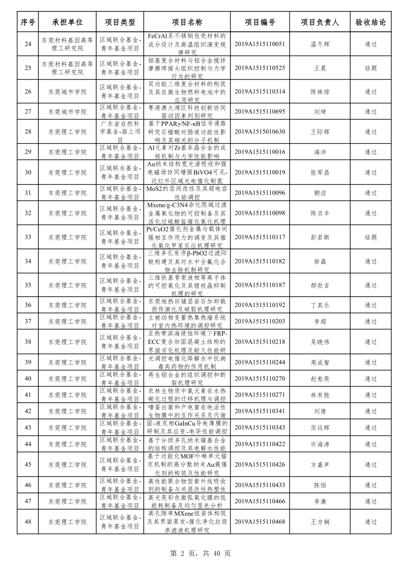 附 件:1.2023年度第一批广东省基础与应用基础研究基金项目验收结论