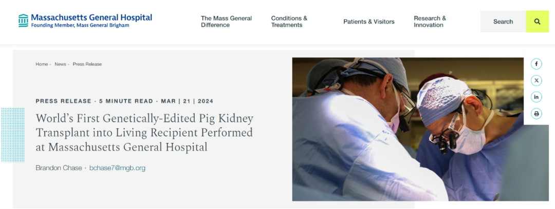3 月 21 日,美国麻省总医院对外宣布,其移植中心外科医生团队成功将基因编辑猪肾移植到一名 62 岁男性体内。这也是世界上首次将猪肾移植到活体受体中。