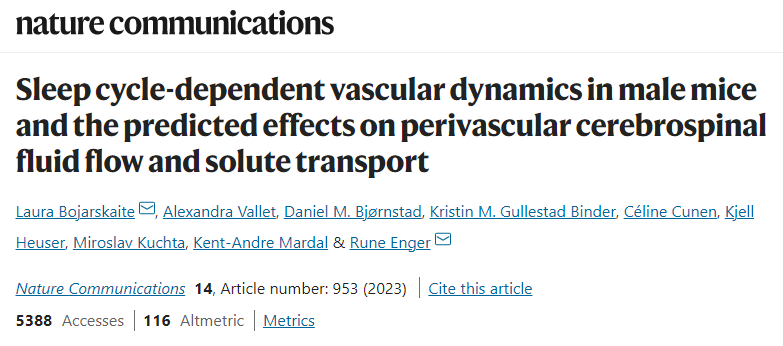 近日,挪威奥斯陆大学的研究人员在 Nature 子刊" Nature Communications "上发表了一篇题为" Sleep cycle-dependent vascular dynamics in male mice and the predicted effects on perivascular cerebrospinal fluid flow and solute transport "的研究论文。