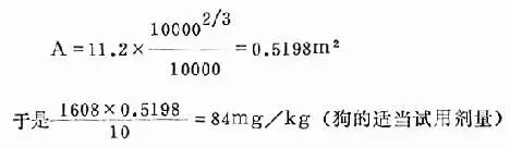 1958年Pinkle氏报告6-MP等抗肿瘤药物在小鼠、大鼠、狗和人身上的治疗剂量,按mg/kg计算时差距甚大,但如改为按mg/m2体表面积计算,就都非常接近。